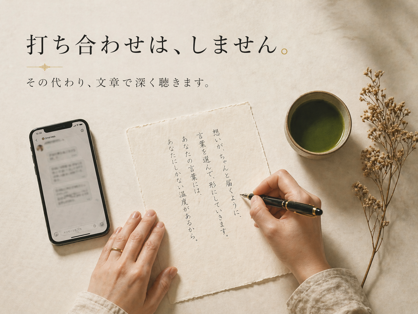 半年をかけて、フォームで何十通も文章をやり取りしました。通話は一度もしていません。でも、不思議と画面の向こうに、こちらの呼吸まで受け取ってくれている人がいる感覚がありました。